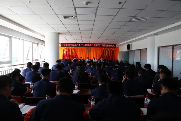 2020年8月10日上午,蘭州新區石投集團舉行2020年產業工人技能提升暨新員工培訓開班儀式,新區黨群工作部部長柴守強,集團公司副總經理姜錦,副總經理齊鐵盾,副總經理高厚奇,秦川園區管委會委員、主任助理豆永良,新區黨群工作部工會工作科科長狄生俊,工會工作科副科長郭凌冰出席開班儀式。