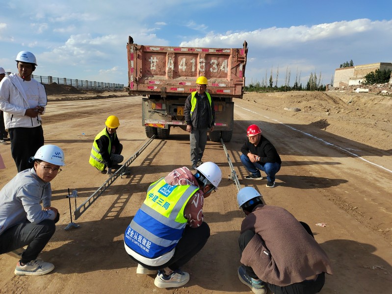 此次路基工程中間交工驗收段為經40路(k0+000-k0+730段)、緯51路(K0+580---K1+300段)。交驗小組嚴格按照驗收標準和規范,分別對路基彎沉、壓實度、高程、寬度等指標進行了檢查驗收,經現場檢測,各項指標均符合設計圖紙及規范要求,具備轉入下道工序的施工條件,驗收順利通過。此次路基分段順利交驗,為后續路基交驗奠定了基礎,也為路面施工創造了良好條件。